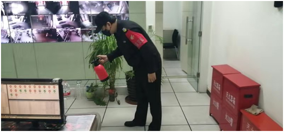 保安隊(duì)員對(duì)工作地點(diǎn)進(jìn)行消毒